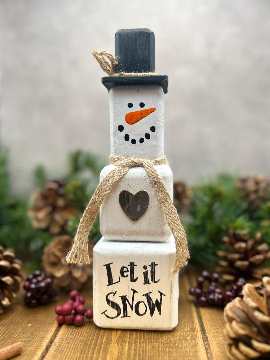 The timeless “Let It Snow” phrase reminds everyone of the joy and wonder of the Christmas season. The Rustic Snowman adds a touch of warmth and whimsy to any space. A delightful addition to any festive collection.