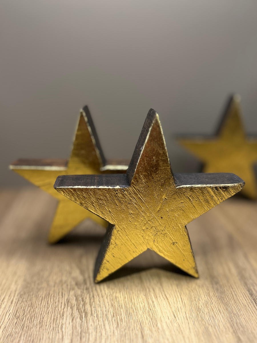What truly sets this star apart is the addition of gold leaf (metal leaf) on its surface, giving it a golden glow that sparkles under Christmas lighting. The golden accents make this star a standout addition to your holiday setup, ensuring it catches the eye of everyone who steps into your home.