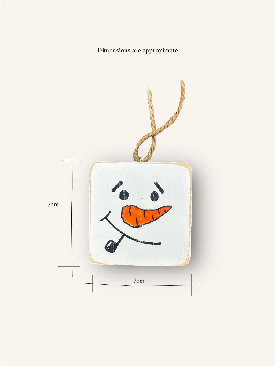 Our set of three rustic Snowman Tree decorations will add a touch of whimsy to any Christmas decor.  This charming set of three handmade decorations, featuring delightful hand painted snowman faces will surely bring a smile to anyone who sees them, who doesn’t love a snowman with a crinkly carrot nose, we certainly do. These tree decoration are a perfect addition to your rustic theme tree or any tree that feature high quality decorations.